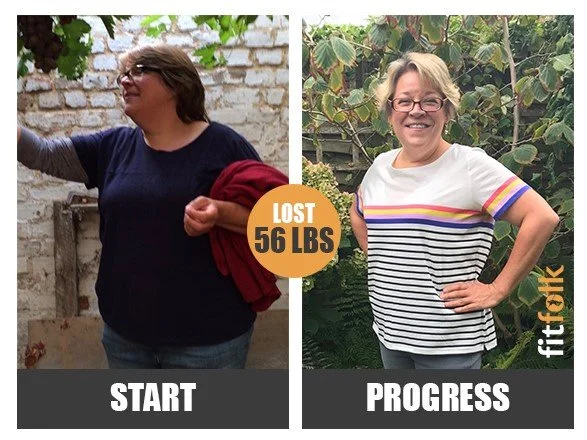 Liz is without doubt one of my favorite clients ever. I helped her break decades of yo-yo dieting and she taught me to cook loads of meals. More importantly, she is absolutely hilarious!! A keen gardener that does Pilates, the 56lbs took a good year to lose.